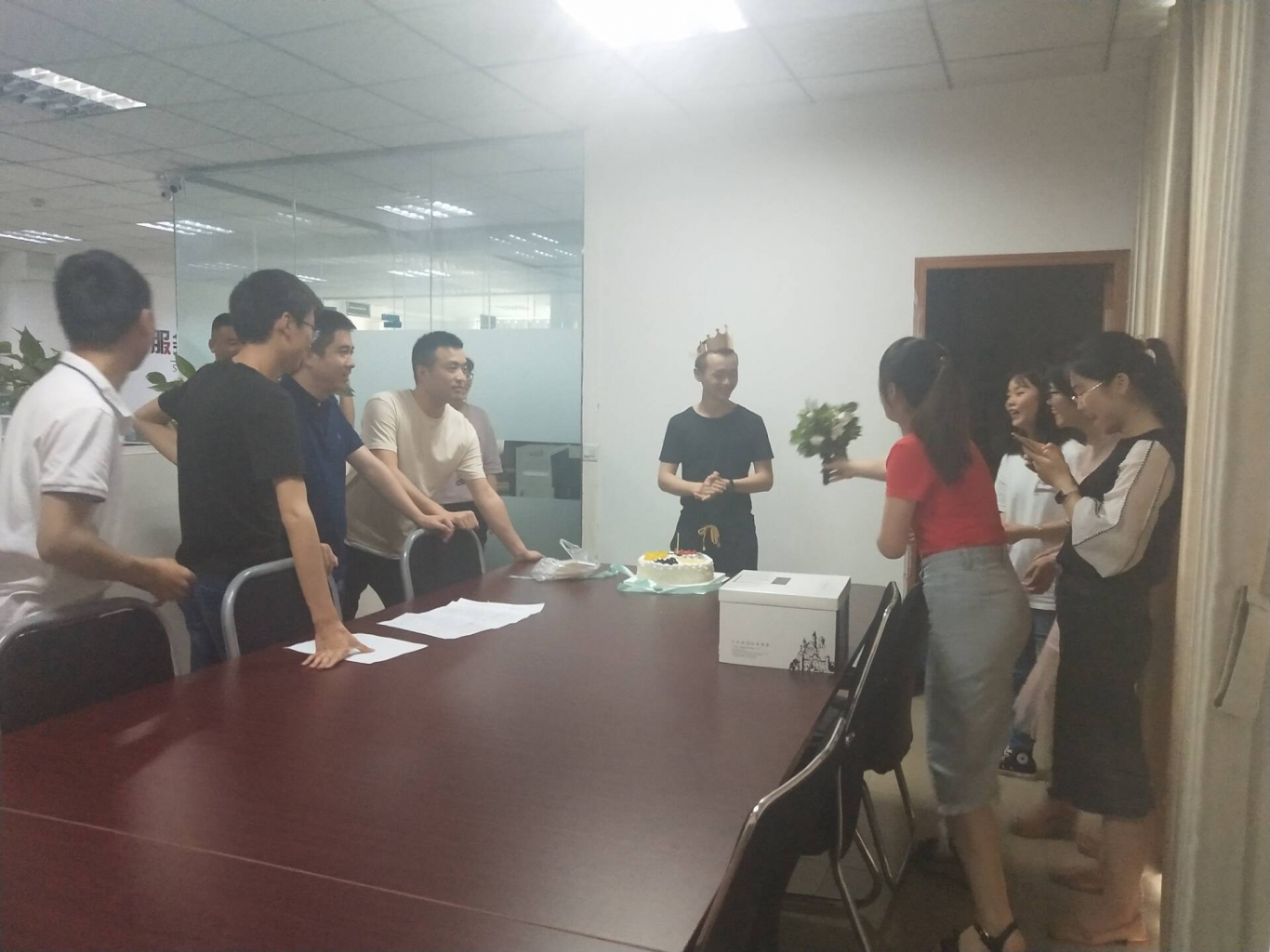 本次生日會在技術(shù)部的會議室內(nèi)舉行,由綜合辦負責組織,來自各部門的同事歡聚一堂,共同為本月的“壽星”慶生。上午九點,生日會正式開始,伴隨著生日歌的旋律,同事們隨著節(jié)拍唱起了生日歌,結(jié)束后紛紛為“壽星”送上鮮花和或致以真摯的祝福。溫馨彌漫在整個生日會場,燭光下洋溢著笑容的臉龐,體現(xiàn)了“不是一家人,勝似一家情”的溫馨氛圍。