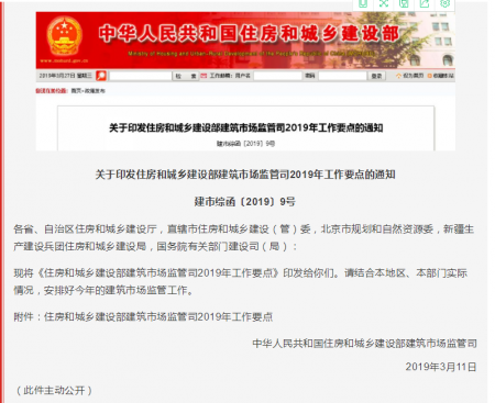 住建部建筑市場(chǎng)監(jiān)管司《2019年工作要點(diǎn)》出臺(tái)!